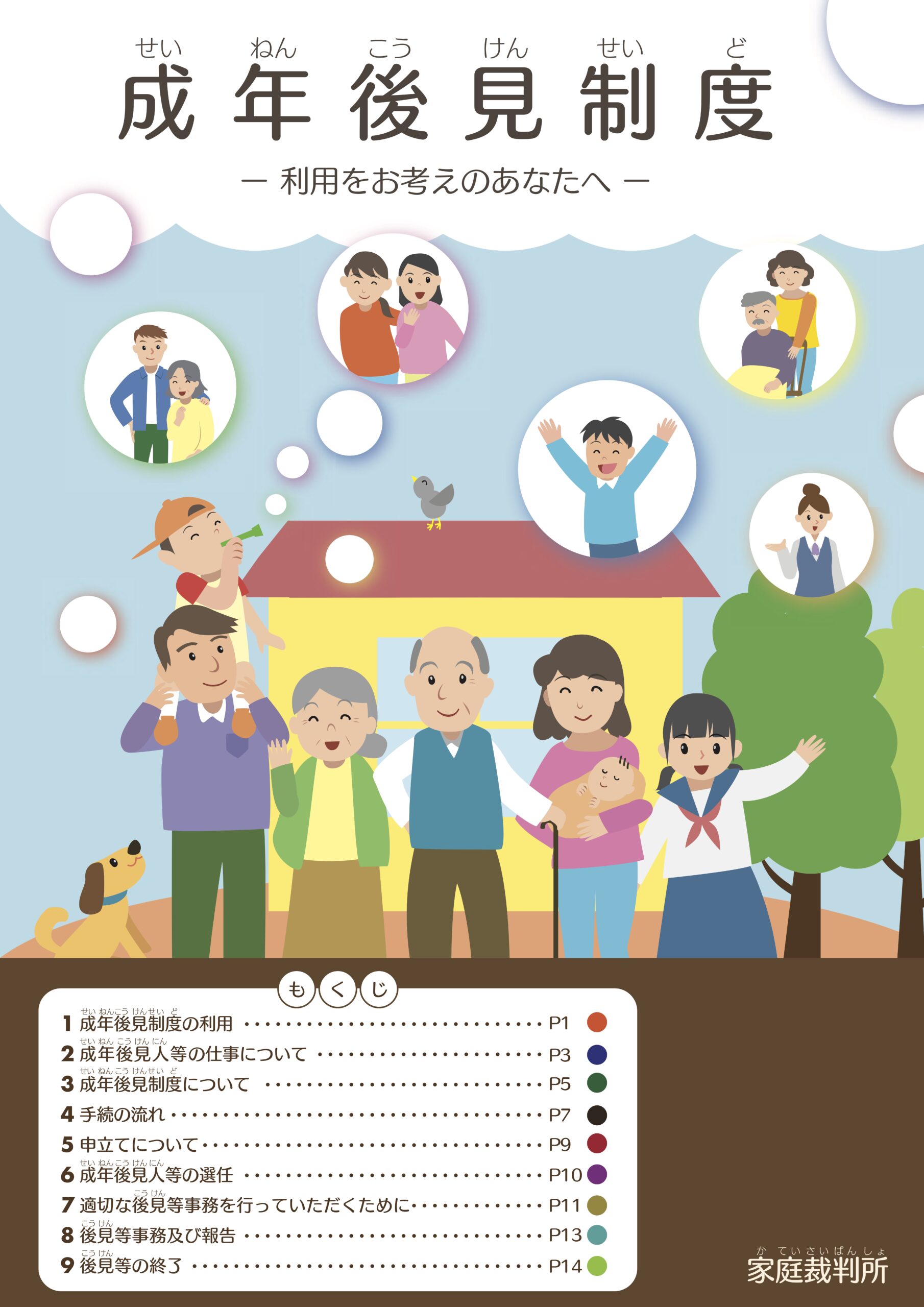 家庭裁判所の成年後見人リーフレットです。成年後見人の制度概要や手続きの流れなどがわかりやすく記載されています。