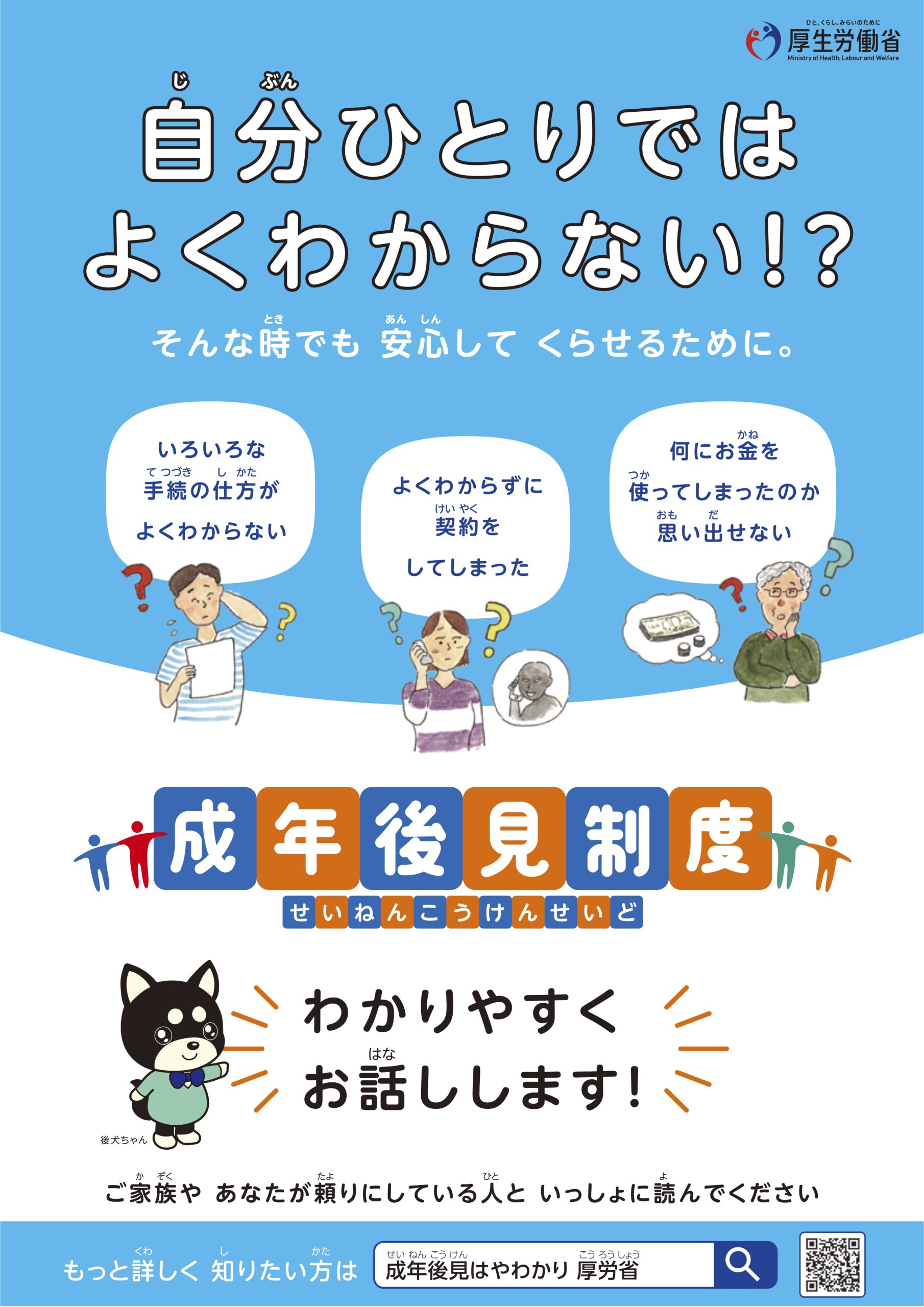 厚生労働省の成年後見制度説明サイトです。パンフレットや動画など関連資料も閲覧できます。
