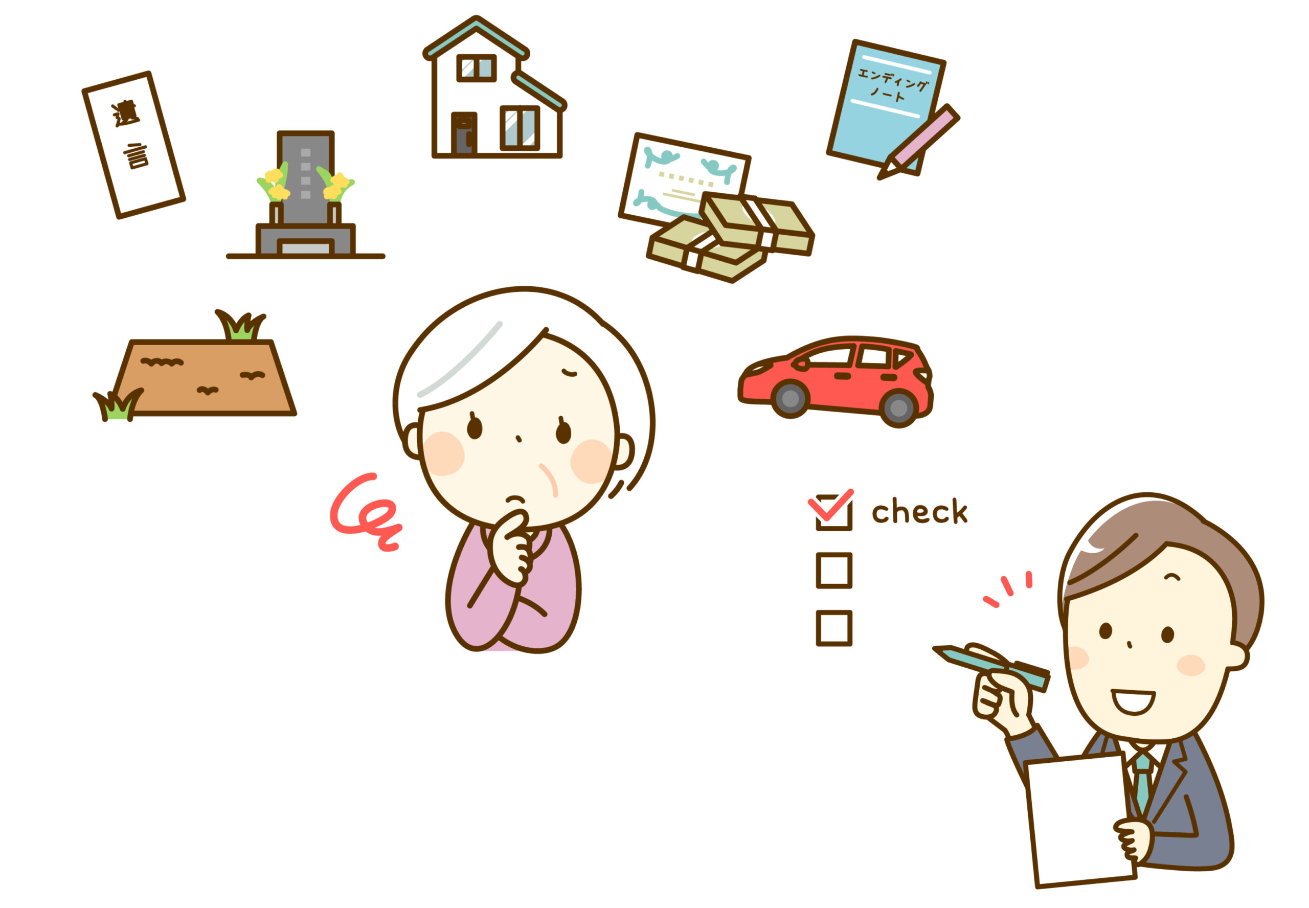 車の処分や賃貸アパートの解約や家財処分、不動産など重要な資産の売却や、遺言作成のサポートなども行っております。必要に応じて専門職の方への橋渡しも調整し、お客様が重要な事項でも不安なく手続きが行えるよう支援します。終活としての局面もあり、将来他人に迷惑がかからないように⋯と考え元気なうちからできる整理を進めていきたい。でも一人だと難しい⋯。そんな方にとってもメリットがあります。